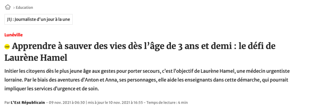 Dans le cadre du prochain Festival International de Géographie de Saint-Dié-des-Vosges qui aura pour thème « URGENCES », Dr Laurène sera présente en tant qu’auteur invité, pour parler de l’urgence d’enseigner le secourisme aux enfants. Mais pas n’importe comment, en s’amusant !